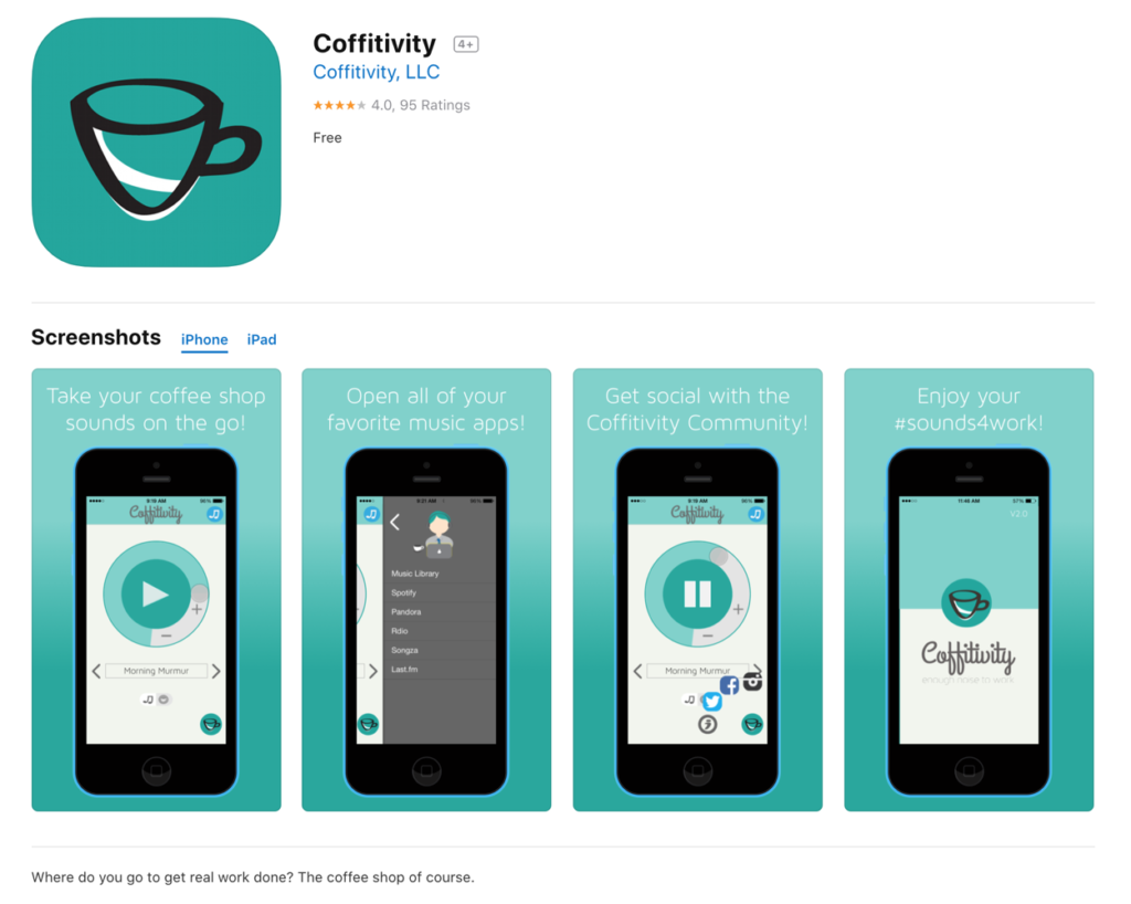 Coffitivity is available on the website, iOS, and an offline desktop app.